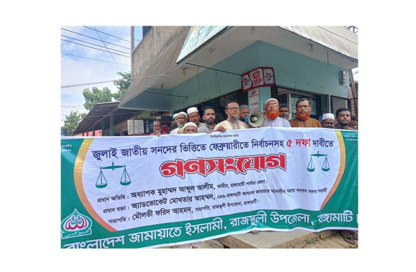উচ্চপ্রু মারমা রাজস্থলী রাঙ্গামাটি প্রতিনিধি।। রাঙামাটির রাজস্থলী উপজেলায় বাংলাদেশ জামায়াতে ইসলামীর উদ্যোগে ব্যাপক নির্বাচনী গণসংযোগ ও পথসভা অনুষ্ঠিত হয়েছে। বুধবার (১ অক্টোবর) সকাল ১১টা থেকে দুপুর দেড়টা পর্যন্ত টানা আড়াই ঘণ্টাব্যাপী এ কর্মসূচি পরিচালিত হয়।