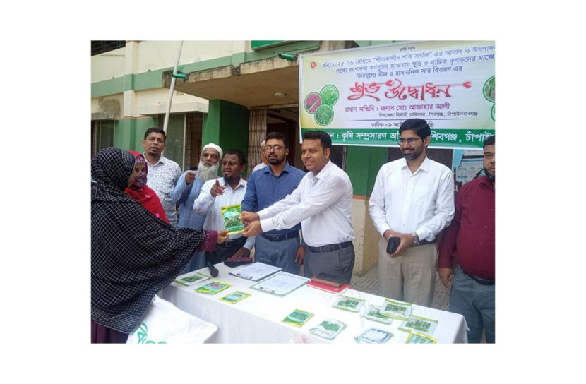 চাঁপাইনবাবগঞ্জের শিবগঞ্জে ক্ষুদ্র ও প্রান্তিক ১ হাজার ১০০ কৃষকের মাঝে বিনামূল্যে আগাম শীতকালীন সবজির বীজ ও রাসায়নিক সার বিতরণ করা হয়েছে।