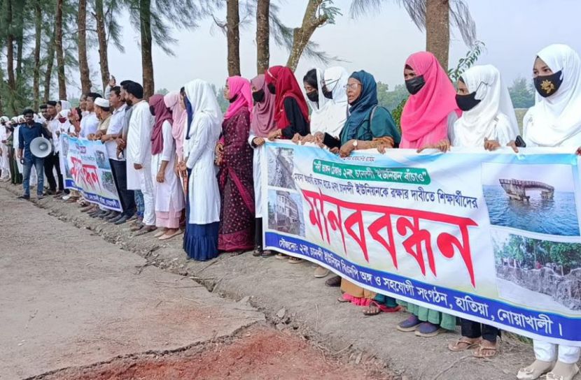 নোয়াখালীতে নদী ভাঙ্গণ রোধে শিক্ষার্থী ও এলাকাবাসীর মানববন্ধন