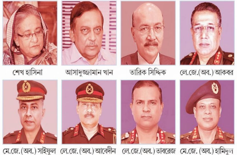অভিযুক্তদের মধ্যে ক্ষমতাচ্যুত প্রধানমন্ত্রী শেখ হাসিনা, তৎকালীন স্বরাষ্ট্রমন্ত্রী আসাদুজ্জামান খান কামাল, প্রধানমন্ত্রীর নিরাপত্তা উপদেষ্টা মেজর জেনারেল (অব.) তারিক আহমেদ সিদ্দিক উল্লেখযোগ্য। এছাড়া সেনা গোয়েন্দা সংস্থার (ডিজিএফআই) পাঁচ সাবেক প্রধান ও পুলিশের সাবেক আইজিসহ ২৮ কর্মকর্তা আছেন।