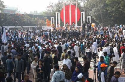 আজ শনিবার (২১ ফেব্রুয়ারি) প্রথম প্রহরে ঢাকার কেন্দ্রীয় শহীদ মিনারে মহান শহীদ দিবস ও আন্তর্জাতিক মাতৃভাষা দিবস উপলক্ষে ১৯৫২ সালে বুকের তাজা রক্ত দিয়ে প্রাণ উৎসর্গকারী জাতির বীর শহীদদের স্মরণে তাদের প্রতি শ্রদ্ধা জানিয়ে পুষ্পস্তবক অর্পণ করেন।