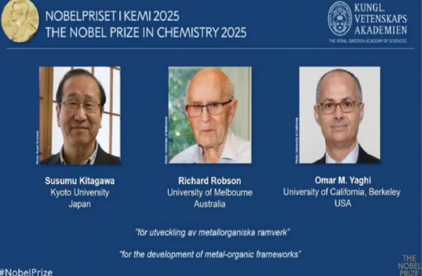 চলতি বছর রসায়নে নোবেল পুরস্কার পেয়েছেন জাপানের কিউটো বিশ্ববিদ্যালয়ের সুসুমু কিতাগাওয়া, অস্ট্রেলিয়ার মেলবোর্ন বিশ্ববিদ্যালয়ের রিচার্ড রবসন এবং যুক্তরাষ্ট্রের ক্যালফোর্নিয়া বিশ্ববিদ্যালয়, বার্কলির ওমর এম ইয়াঘি।