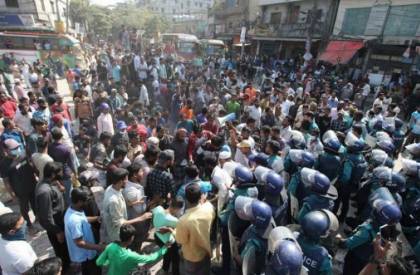 একপর্যায়ে পরিস্থিতি এমন সংঘাতপূর্ণ হয়ে উঠল যে শিক্ষার্থীদের হতাহত হওয়ার শঙ্কা দেখা গেল। এই পরিস্থিতিতে পুলিশ সাউন্ড গ্রেনেড ও কাঁদানে গ্যাস ছুঁড়ে পরিস্থিতি নিয়ন্ত্রণের চেষ্টা চালায়। এর মধ্যে সিটি কলেজের ছেলেরা এলাকা ছেড়ে গেলেও ঢাকা কলেজের ছেলেরা তাদের কলেজের সামনে সন্ধ্যা ৬টা পর্যন্ত অবস্থান নেন।