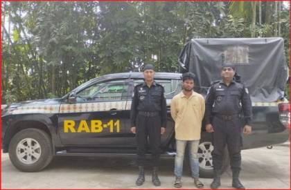 র্যাব-১১ জানায়, চাঁন্দা ডাকাত এলাকায় অস্ত্রের মহড়া দিয়ে নিরীহ এলাকাবাসীকে ভয়-ভীতি দেখিয়ে জুলুম, নির্যাতন ও চাঁদাবাজী করে আসছে। অস্ত্রও গুলি ব্যবহার করে বিভিন্ন দাঙ্গা-হাঙ্গামা করার জন্য আগ্নেয়াস্ত্র তার হেফাজতে রেখেছে। গোপন সংবাদের ভিত্তিতে তাকে গ্রেপ্তার করা হয়।