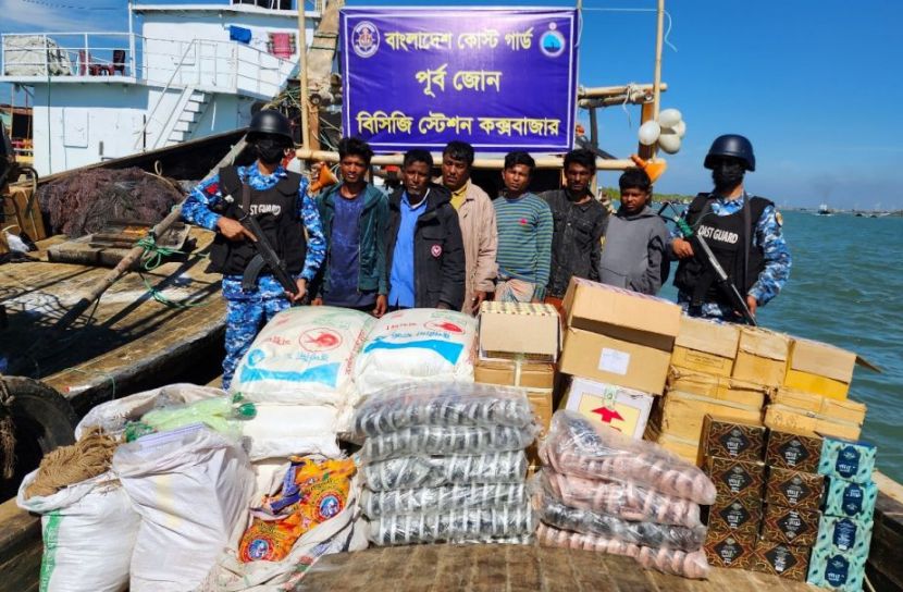 মায়ানমারে পাচারকালে বিপুল পরিমাণ নিত্য প্রয়োজনীয় পণ্য ও ঔষধ সামগ্রীসহ ৬ জন পাচারকারীকে আটক করেছে কোস্টগার্ড।