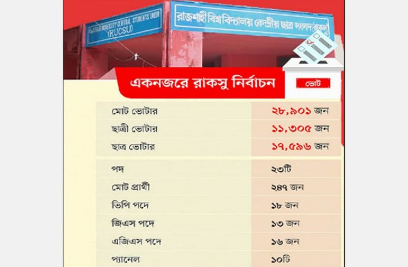 এবারের রাকসুতে মোট ২৮ হাজার ৯০১ জন ভোটার,এর মধ্যে ৩৯ দশমিক ১০ শতাংশ নারী এবং ৬০ দশমিক ৯০ শতাংশ পুরুষ। প্রার্থী রয়েছেন ৮৬০ জন। এর মধ্যে কেন্দ্রীয় রাকসুর ২৩ পদে ৩০৫ জন, সিনেটের ৫ পদে ৫৮ জন এবং ১৭টি হল সংসদের ২৫৫ পদে ৫৫৫ জন।