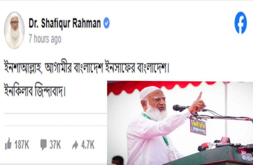 আমির শফিকুর রহমান লিখেন, ‘ইনশাআল্লাহ, আগামীর বাংলাদেশ ইনসাফের বাংলাদেশ। ইনকিলাব জিন্দাবাদ।