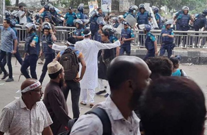 ঘটনাস্থলে থেকে বিশেষ প্রতিনিধি সুমন মাহমুদ জানিয়েছেন, দুপুর ১টা ৫৫ মিনিটে পুলিশের তরফে আন্দোলনকারীদের কেন্দ্রীয় শহীদ মিনারে চলে যেতে বলা হয়। তখন আন্দোলনকারীদের একটি অংশ তা মানতে রাজি হয়নি। তারা পুলিশকে লক্ষ্য করে ‘ভুয়া, ভুয়া’ স্লোগান দিতে থাকেন। একপর্যায় পুলিশ ধাওয়া দিয়ে সাউন্ড গ্রেনেড ও কাঁদুনে গ্যাস ছোড়ে। এরপর সেগুনবাগিচা সড়ক, তোপখানা সড়ক, সার্ক ফোয়ারাতে পুলিশ অবস্থান নেয়।